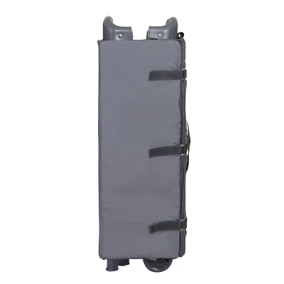 Your little one will feel comfy and secure in the adorable Lil Snooze Deluxe II Nursery Center from Baby Trend. The removable napper with canopy is perfect for a little shuteye throughout the day and the hanging toys keep them entertained while awake. Diaper time is a breeze with the flip away changing table and storage pocket for changing essentials. As baby grows, the nursery center transforms into the ideal play time center and the large wheels with brakes provide added mobility and stability. The Nursery Center folds compact and easily fits into the included travel/storage bag for convenient portability.