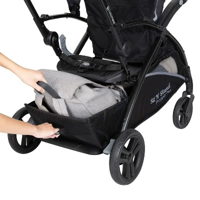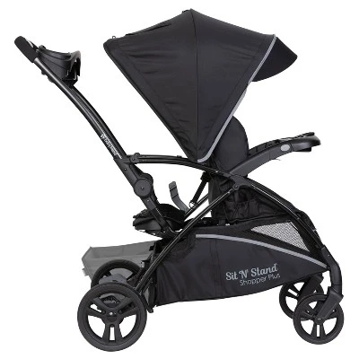 The Baby Trend® Sit N’ Stand® 5-in-1 Shopper Plus Stroller is perfect for your growing family. With the new compact and streamlined frame, our Sit N’ Stand® 5-in-1 Shopper Stroller has 5 modes of use – car seat travel system mode, car seat in the front seat with sibling on platform, child in the stroller seat only, child in the stroller seat with sibling sitting on bench, and child in the stroller seat with sibling standing. The front and back seats can hold kids up to 50lbs each.