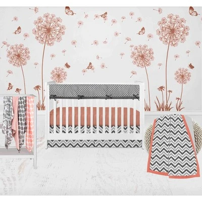 - 8 pc Crib Set with Crib Rail Guard: 1 Reversible Long Side Crib Rail Guard Cover, 1 Cotton Percale Reversible Comforter/Play Mat, 4 Muslin Cotton Swaddle Blankets, 1 Cotton Percale Fitted Crib Sheet and 1 Cotton Percale Crib Skirt/Bed Ruffle
