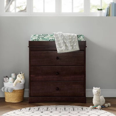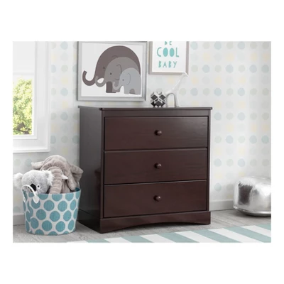 The Skylar 3 Drawer Dresser from Delta Children takes kids from tot to teen-keeping all their essentials organized in the process. Easily transitioning from changing station to dresser, it features a removable changing topper, three spacious drawers with safety stops and a simple silhouette, ensuring it will never go out of style. Available in Gray, Ebony, Dark Chocolate and Bianca White. Coordinates with other items in the Skylar Collection from Delta Children.