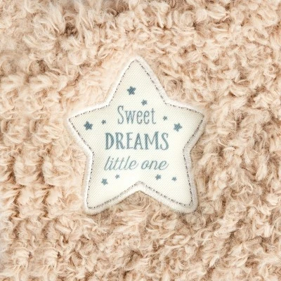 The adorable Sweet Dreams Bear Blankie is a wonderful gifting option for any expecting mother or new little one. This cuddly classic blankie features a timeless square shape with super soft materials and muted colors. A plush bear character at the top adds a cozy feel to this piece, pairing perfectly with heartfelt sentiments at the front. This piece is a member of our curated Night Night nursery collection. This line will help make bedtime a breeze and loads of fun with a collection of cute and cozy designs that help establish a nighttime routine and encourage your little ones to get to sleep. Each safety-tested piece in this collection features super soft, machine washable fabrics, cute characters and beautiful colors making the perfect nighttime companion. This piece is a wonderful present for any little one or expecting mother on your list. Sentiment: Twinkle, twinkle little star, how I wonder what you are! Up above the world so high, like a diamond in the sky. Twinkle, twinkle little star. Do you know how loved you are? Goodnight, sleep tight.