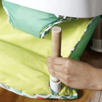 Tiny Tropics is quick to set up and transition from baby activity seat to doorway jumper and all the parts needed are included. Simply click the wood legs, with pre-assembled mat, into the tray and add the plush toucan toy to set up the baby activity seat in two easy steps. To convert to the doorway jumper, release the wood legs and click in the hanging straps. It’s that easy!