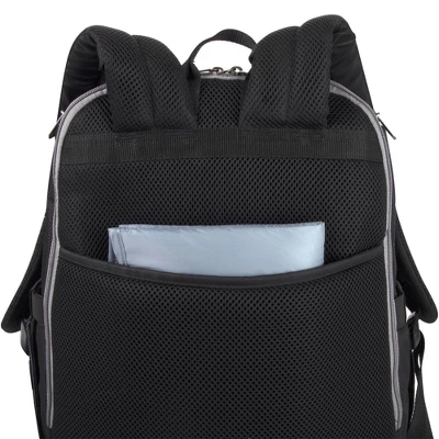 It’s great to be going places with baby, and this super-smart backpack makes it easy, fuss-free and fun. Fashioned of easy care fabric it features the Fastfinder Pocket System for maximum organization and a Super Cooler, so meals-on-the- go are a cinch. 12 pockets give you endless options for storage, including wipes pocket, paci pocket, diaper pocket, phone pocket, and a large insulated front compartment to hold 3 bottles/sippy cups. Changing pad included. For comfort’s sake, you’ll enjoy padded, adjustable shoulder straps, padded mesh back and a reinforced footed bottom.