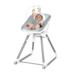 Kids grow up fast and the Ingenuity Full Course 6-in-1 High Chair – Astro grows with them. Every inch was designed to help you conquer mealtime as it advances from puree splatters to picky eaters. This convertible high chair easily transitions from first foods chair to a traditional high chair to a chair top booster to a dining chair and toddler seat. When used as a booster and toddler chair, it can seat two children at the same time. The Feed Easy mini food tray makes less mess and intimate parent-baby bonding, alongside the main tray for bigger bites. Both trays easily slide out with a pinch. Kitchen cleanup is a breeze with wipeable materials and a dishwasher-safe main tray and a mini Feed Easy tray. Easily remove the machine-washable seat pad and machine-washable harness and straps. Keep your little one comfy (features 2 recline positions) and secure with the 5-point safety harness. The portable high chair has 2 wheels, so it’s easy to move when not locked in position. Give baby a seat at the table that’ll change as much as your child’s taste buds.
