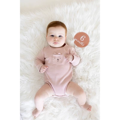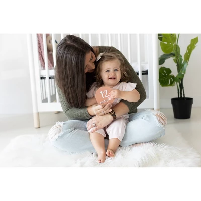 Pearhead’s monthly milestone marker cards are the perfect photo prop to capture pregnancy moments and create baby keepsakes. Milestone photo cards labeled with “one month” to “twelve months” in charming script make it possible to capture each month of your pregnancy along with each month of baby’s first year. The prop discs cards are perfect for taking baby girl photos to add to a baby book or hang in a nursery. Get creative and capture photos to share to social media to document mom’s pregnancy journey, baby’s first twelve months, pregnancy announcements, baby birth announcements and more! These baby milestone photo cards are the perfect addition to any baby shower registry, gift for expecting mothers or gift for new parents. At Pearhead, we aim to create genuine, quality products to celebrate your special moments in life. We are a family of designers, marketers, and trendsetters bringing products to life that will bring a smile to your face. From concept and design to production and customer service, the Pearhead team works together seamlessly every step of the way. Whether your baby is celebrating their first year of life, you are announcing your pregnancy, or your pup is celebrating his first holiday season, Pearhead is here to share your moments in style. Includes 12 labeled cards. Card Dimensions: 4”W x 4”H x 0.06”D.