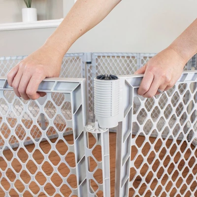 - The self-locking hinges on the gate panels allow you to adjust to your space.